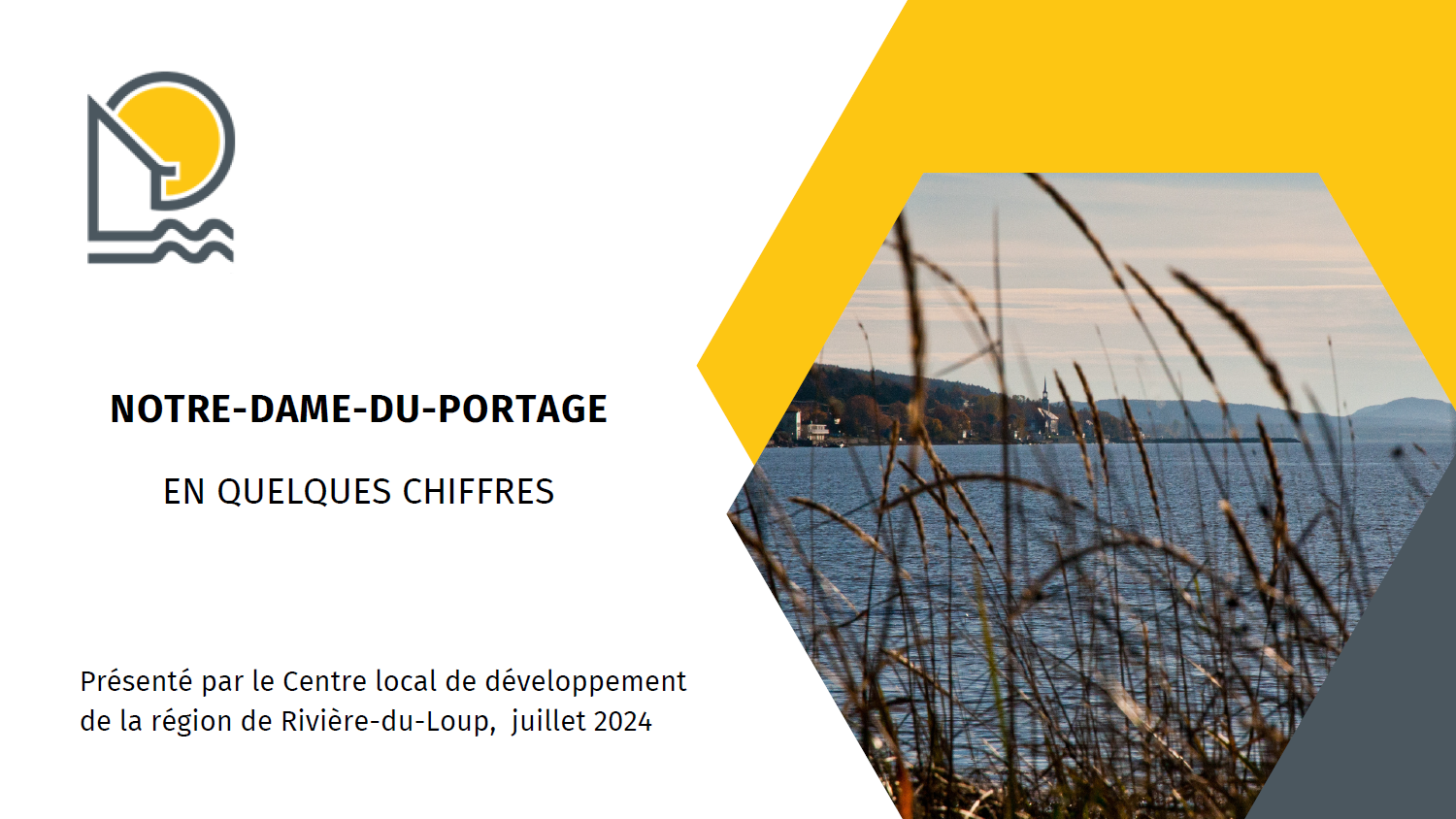 Le Centre local de développement (CLD) de la région de Rivière-du-Loup présente la version 2024 du Profil statistique de Notre-Dame-du-Portage. Ce portrait repose sur les données les plus récentes du Recensement de 2021 de Statistique Canada, ainsi que sur des données régionales actualisées. Il dresse un aperçu clair des caractéristiques démographiques, sociales et économiques de la municipalité et les compare avec celles de la MRC de Rivière-du-Loup, du Bas-Saint-Laurent et du Québec.